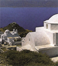 here. Plaka, the island's main town, stands on a hill