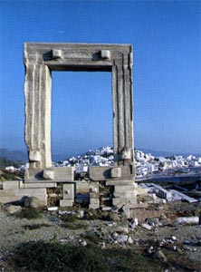 stands a large gateway (pyle) known as "Portara", which