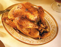 3) Stuff the turkey with the mixture, place in a